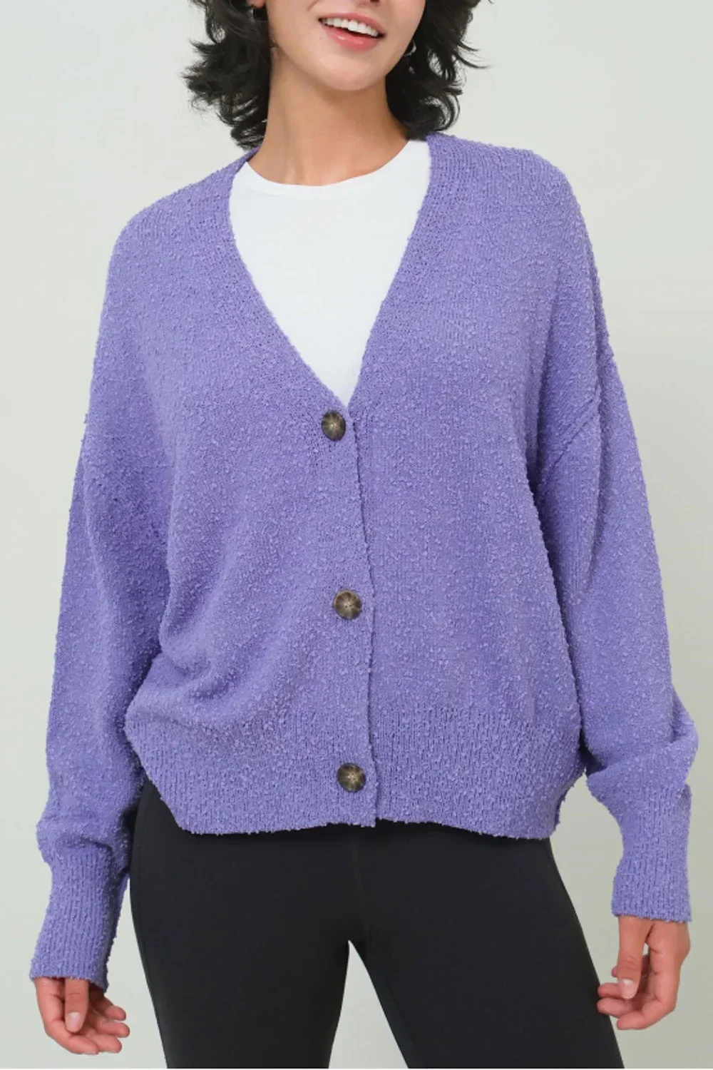 Soft Textured Button Front V-Neck Long Sleeve Cozy Boutique Fashion Cardigan Sweater